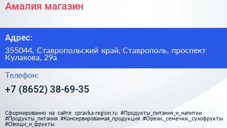 Амалия, магазин по адресу 355044, Ставропольский край, Ставрополь, проспект Кулакова, 29а в дальнейшем Организация, размещена в следующих категориях: