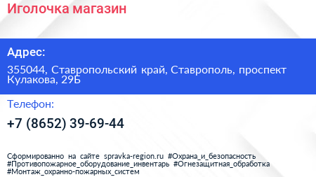 Иголочка, магазин по адресу 355044, Ставропольский край, Ставрополь, проспект Кулакова, 29Б в дальнейшем Организация, размещена в следующих категориях: