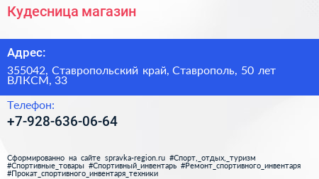 Кудесница, магазин по адресу 355042, Ставропольский край, Ставрополь, 50 лет ВЛКСМ, 33 в дальнейшем Организация, размещена в следующих категориях: