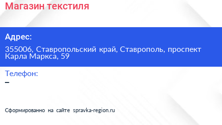 Магазин текстиля по адресу 355006, Ставропольский край, Ставрополь, проспект Карла Маркса, 59 в дальнейшем Организация, размещена в следующих категориях: