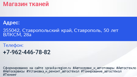 Магазин тканей по адресу 355042, Ставропольский край, Ставрополь, 50 лет ВЛКСМ, 28а в дальнейшем Организация, размещена в следующих категориях: