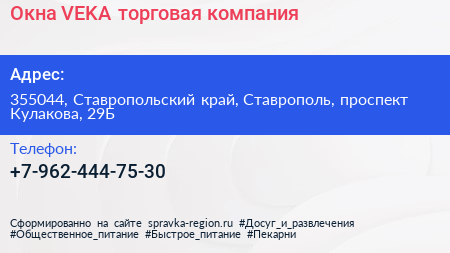 Окна VEKA, торговая компания по адресу 355044, Ставропольский край, Ставрополь, проспект Кулакова, 29Б в дальнейшем Организация, размещена в следующих категориях: