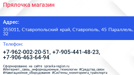 Прялочка, магазин по адресу 355011, Ставропольский край, Ставрополь, 45 Параллель, 32 в дальнейшем Организация, размещена в следующих категориях: