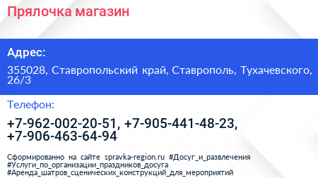 Прялочка, магазин по адресу 355028, Ставропольский край, Ставрополь, Тухачевского, 26/3 в дальнейшем Организация, размещена в следующих категориях: