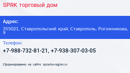 SPRK, торговый дом по адресу 355021, Ставропольский край, Ставрополь, Рогожникова, 9 в дальнейшем Организация, размещена в следующих категориях: