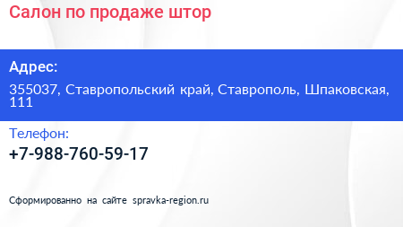 Салон по продаже штор по адресу 355037, Ставропольский край, Ставрополь, Шпаковская, 111 в дальнейшем Организация, размещена в следующих категориях: