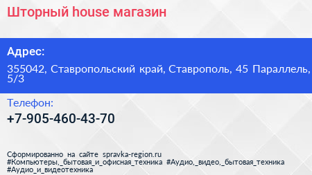 Шторный house, магазин по адресу 355042, Ставропольский край, Ставрополь, 45 Параллель, 5/3 в дальнейшем Организация, размещена в следующих категориях: