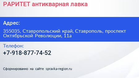 РАРИТЕТ, антикварная лавка по адресу 355035, Ставропольский край, Ставрополь, проспект Октябрьской Революции, 11а в дальнейшем Организация, размещена в следующих категориях: