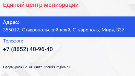 Единый центр мелиорации по адресу 355017, Ставропольский край, Ставрополь, Мира, 337 в дальнейшем Организация, размещена в следующих категориях: