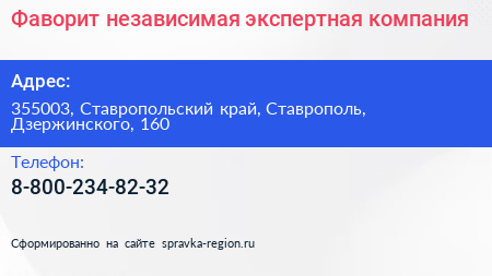 Фаворит, независимая экспертная компания по адресу 355003, Ставропольский край, Ставрополь, Дзержинского, 160 в дальнейшем Организация, размещена в следующих категориях: