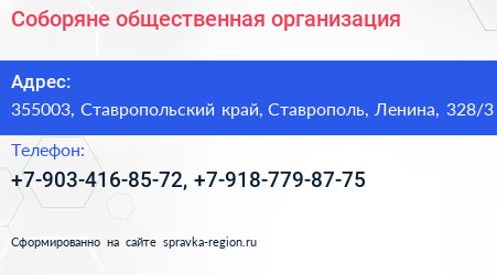 Соборяне, общественная организация по адресу 355003, Ставропольский край, Ставрополь, Ленина, 328/3 в дальнейшем Организация, размещена в следующих категориях:
