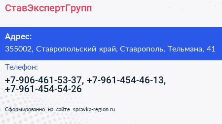 СтавЭкспертГрупп по адресу 355002, Ставропольский край, Ставрополь, Тельмана, 41 в дальнейшем Организация, размещена в следующих категориях: