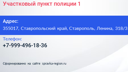 Участковый пункт полиции №1 по адресу 355017, Ставропольский край, Ставрополь, Ленина, 318/3 в дальнейшем Организация, размещена в следующих категориях: