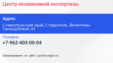 Центр независимой экспертизы по адресу Ставропольский край, Ставрополь, Валентины Гризодубовой, 61 в дальнейшем Организация, размещена в следующих категориях: