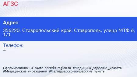АГЗС по адресу 356220, Ставропольский край, Ставрополь, улица МТФ 6, 1/1 в дальнейшем Организация, размещена в следующих категориях: