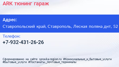 АRК тюнинг гараж по адресу Ставропольский край, Ставрополь, Лесная поляна днт, 52 в дальнейшем Организация, размещена в следующих категориях: