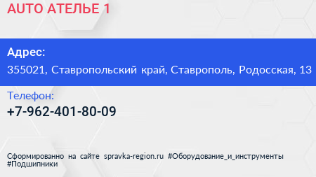AUTO АТЕЛЬЕ №1 по адресу 355021, Ставропольский край, Ставрополь, Родосская, 13 в дальнейшем Организация, размещена в следующих категориях: