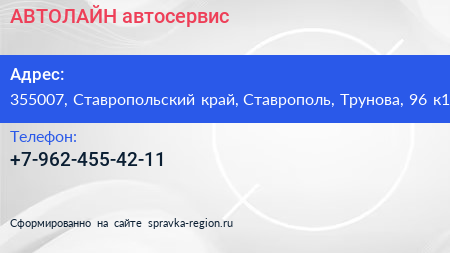 АВТОЛАЙН, автосервис по адресу 355007, Ставропольский край, Ставрополь, Трунова, 96 к1 в дальнейшем Организация, размещена в следующих категориях: