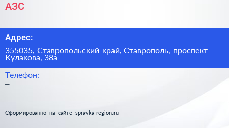 АЗС по адресу 355035, Ставропольский край, Ставрополь, проспект Кулакова, 38а в дальнейшем Организация, размещена в следующих категориях: