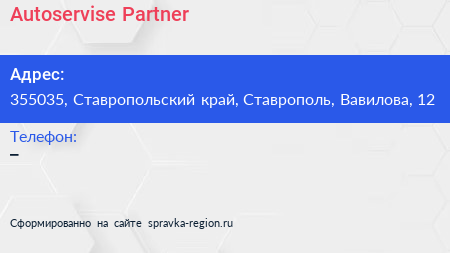 Autoservise Partner по адресу 355035, Ставропольский край, Ставрополь, Вавилова, 12 в дальнейшем Организация, размещена в следующих категориях: