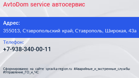 AvtoDom-service, автосервис по адресу 355013, Ставропольский край, Ставрополь, Широкая, 43а в дальнейшем Организация, размещена в следующих категориях: