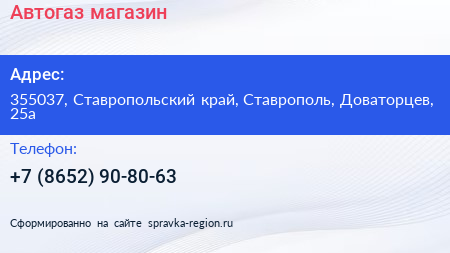 Автогаз, магазин по адресу 355037, Ставропольский край, Ставрополь, Доваторцев, 25а в дальнейшем Организация, размещена в следующих категориях: