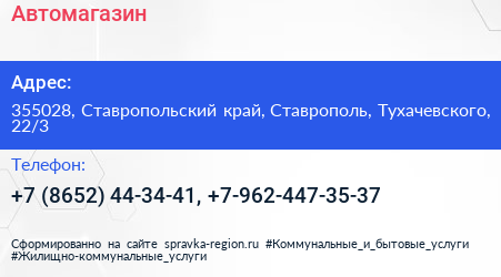Автомагазин по адресу 355028, Ставропольский край, Ставрополь, Тухачевского, 22/3 в дальнейшем Организация, размещена в следующих категориях: