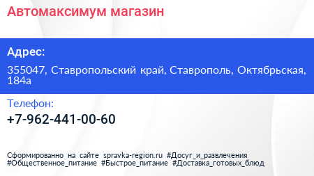 Автомаксимум, магазин по адресу 355047, Ставропольский край, Ставрополь, Октябрьская, 184а в дальнейшем Организация, размещена в следующих категориях: