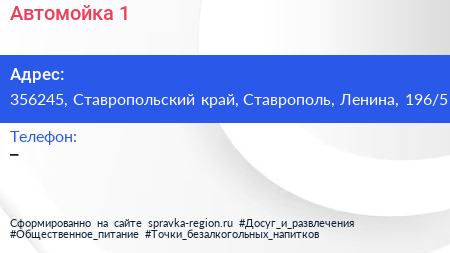 Автомойка №1 по адресу 356245, Ставропольский край, Ставрополь, Ленина, 196/5 в дальнейшем Организация, размещена в следующих категориях: