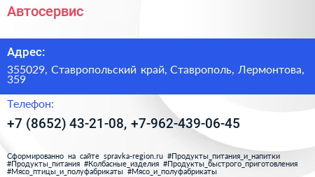Автосервис по адресу 355029, Ставропольский край, Ставрополь, Лермонтова, 359 в дальнейшем Организация, размещена в следующих категориях: