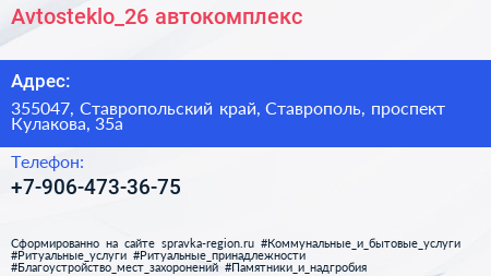 Avtosteklo_26, автокомплекс по адресу 355047, Ставропольский край, Ставрополь, проспект Кулакова, 35а в дальнейшем Организация, размещена в следующих категориях: