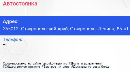 Автостоянка по адресу 355012, Ставропольский край, Ставрополь, Ленина, 85 к1 в дальнейшем Организация, размещена в следующих категориях: