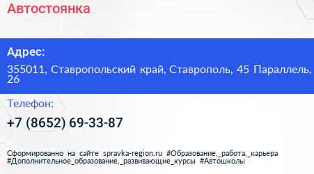 Автостоянка по адресу 355011, Ставропольский край, Ставрополь, 45 Параллель, 26 в дальнейшем Организация, размещена в следующих категориях: