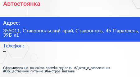 Автостоянка по адресу 355011, Ставропольский край, Ставрополь, 45 Параллель, 39Б к1 в дальнейшем Организация, размещена в следующих категориях: