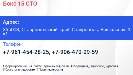 Бокс 15, СТО по адресу 355008, Ставропольский край, Ставрополь, Вокзальная, 3 к1 в дальнейшем Организация, размещена в следующих категориях: