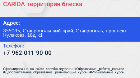 CARIDA, территория блеска по адресу 355035, Ставропольский край, Ставрополь, проспект Кулакова, 18д к1 в дальнейшем Организация, размещена в следующих категориях: