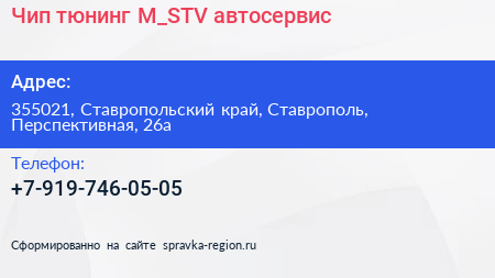 Чип тюнинг M_STV, автосервис по адресу 355021, Ставропольский край, Ставрополь, Перспективная, 26а в дальнейшем Организация, размещена в следующих категориях: