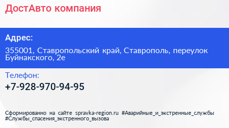 ДостАвто, компания по адресу 355001, Ставропольский край, Ставрополь, переулок Буйнакского, 2е в дальнейшем Организация, размещена в следующих категориях:
