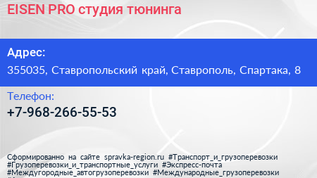 EISEN PRO, студия тюнинга по адресу 355035, Ставропольский край, Ставрополь, Спартака, 8 в дальнейшем Организация, размещена в следующих категориях: