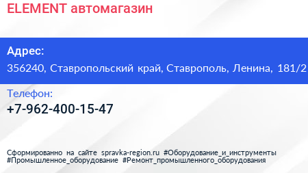 ELEMENT, автомагазин по адресу 356240, Ставропольский край, Ставрополь, Ленина, 181/2 в дальнейшем Организация, размещена в следующих категориях: