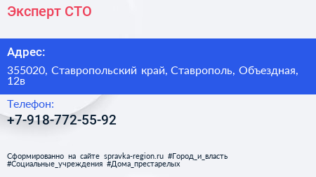 Эксперт, СТО по адресу 355020, Ставропольский край, Ставрополь, Объездная, 12в в дальнейшем Организация, размещена в следующих категориях: