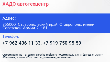 ХАДО, автотехцентр по адресу 355000, Ставропольский край, Ставрополь, имени Советской Армии-2, 181 в дальнейшем Организация, размещена в следующих категориях: