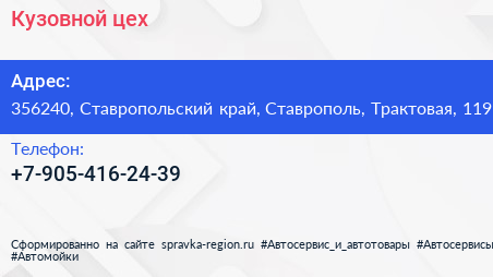 Кузовной цех по адресу 356240, Ставропольский край, Ставрополь, Трактовая, 119 в дальнейшем Организация, размещена в следующих категориях: