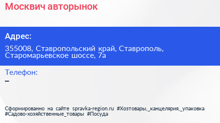Москвич, авторынок по адресу 355008, Ставропольский край, Ставрополь, Старомарьевское шоссе, 7а в дальнейшем Организация, размещена в следующих категориях: