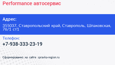 Performance, автосервис по адресу 355037, Ставропольский край, Ставрополь, Шпаковская, 76/1 ст1 в дальнейшем Организация, размещена в следующих категориях: