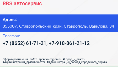 RBS, автосервис по адресу 355007, Ставропольский край, Ставрополь, Вавилова, 34 в дальнейшем Организация, размещена в следующих категориях: