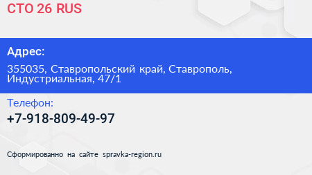 СТО 26 RUS по адресу 355035, Ставропольский край, Ставрополь, Индустриальная, 47/1 в дальнейшем Организация, размещена в следующих категориях: