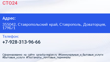 СТО24 по адресу 355042, Ставропольский край, Ставрополь, Доваторцев, 179Б/1 в дальнейшем Организация, размещена в следующих категориях: