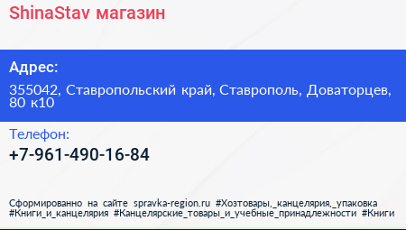 ShinaStav, магазин по адресу 355042, Ставропольский край, Ставрополь, Доваторцев, 80 к10 в дальнейшем Организация, размещена в следующих категориях:
