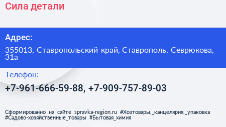 Сила детали по адресу 355013, Ставропольский край, Ставрополь, Севрюкова, 31а в дальнейшем Организация, размещена в следующих категориях: